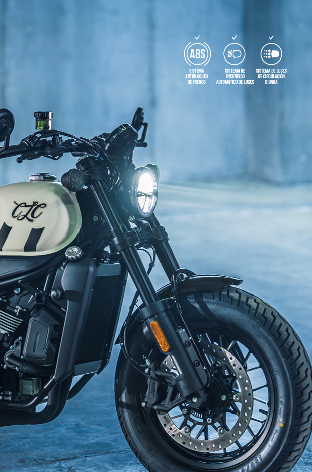 La 450CL-C BOBBER es tu aliada definitiva en la carretera. Con suspensión invertida de 37mm, frena con firmeza gracias a sus discos de 320 mm delantero y 220 mm trasero de marca J.JUAN. El ABS doble canal y el control de tracción (TCS) te aseguran una conducción segura en cualquier terreno. Confía en la 450CL-C BOBBER para una experiencia de manejo sin preocupaciones.